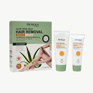 Kit depilatorio con aloe vera diseñado para eliminar el vello mientras cuida la piel. Su fórmula ayuda a calmar, hidratar y reducir la irritación. Ideal para piel sensible, deja la piel suave, fresca y con una sensación de confort después del uso.