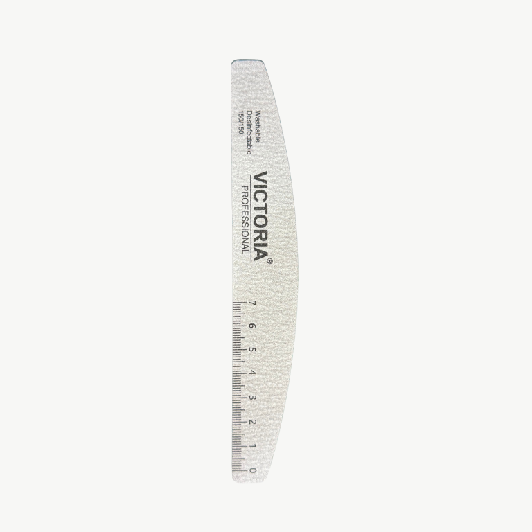 Lima profesional para uñas con grano 150, ideal para dar forma y alisar la superficie de las uñas naturales o artificiales. Perfecta para manicuras y pedicuras, ofreciendo un acabado uniforme y preciso.